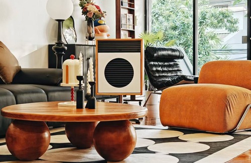 The Hidden Gallery villa is nestled at the crossroads of Bangkok’s most stylish and secure neighborhoods, Thonglor and Ekkamai. The property offers four bedrooms, 4.5 baths and rain showers, and comfortably accommodates up to ten guests. Comfort meets convenience: the ground floor features a private car park (two vehicles), a music lounge, dining area, and outdoor relaxation zone, while the upper floor is equipped with a 55-inch Samsung smart TV. The garden is furnished with seating for many—an ideal spot to unwind, savor good food, and spin vinyl records.